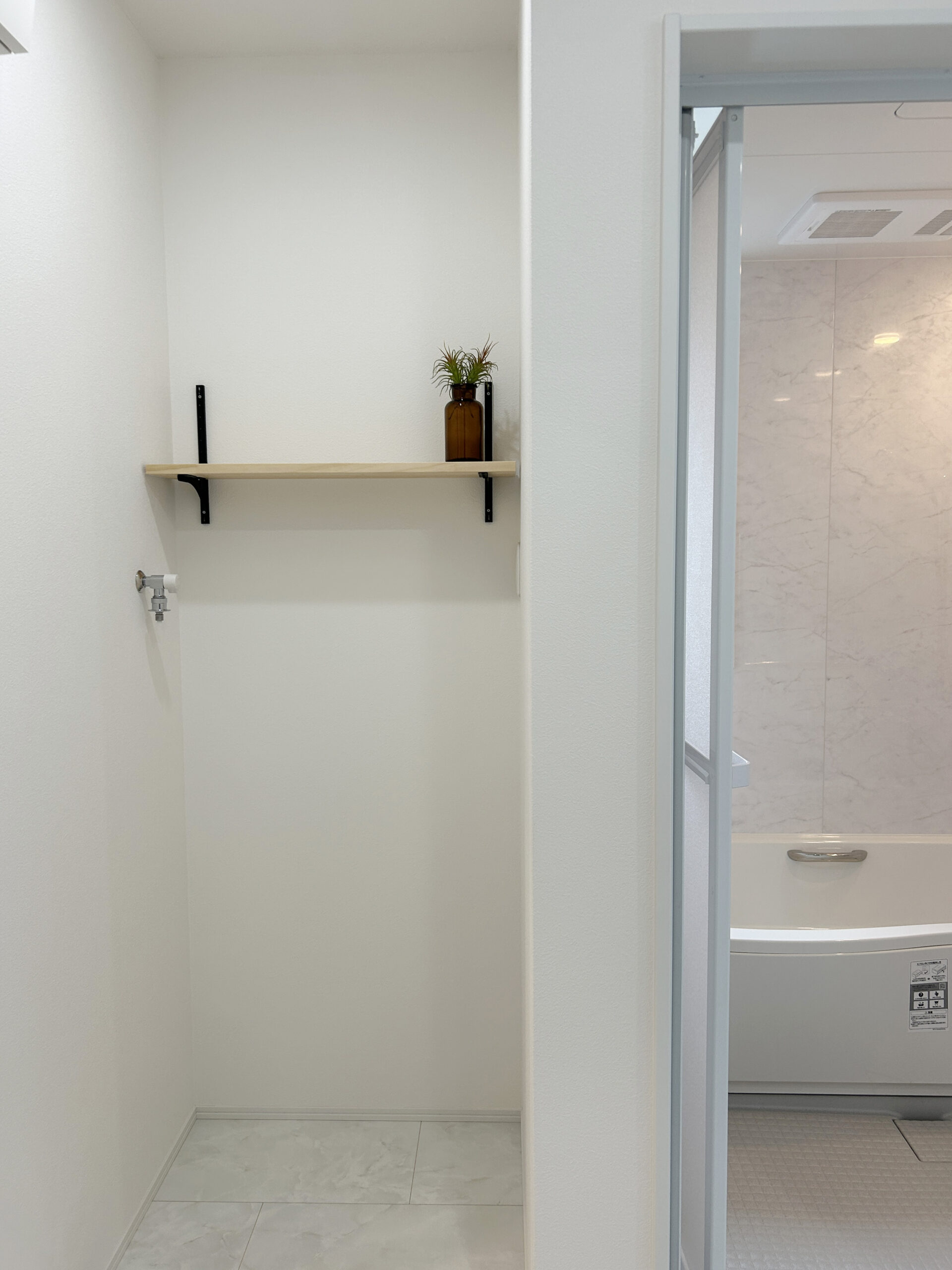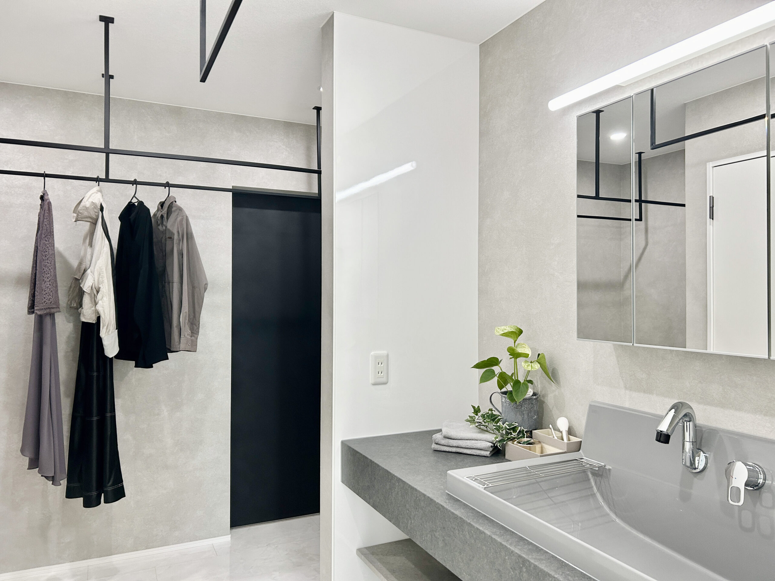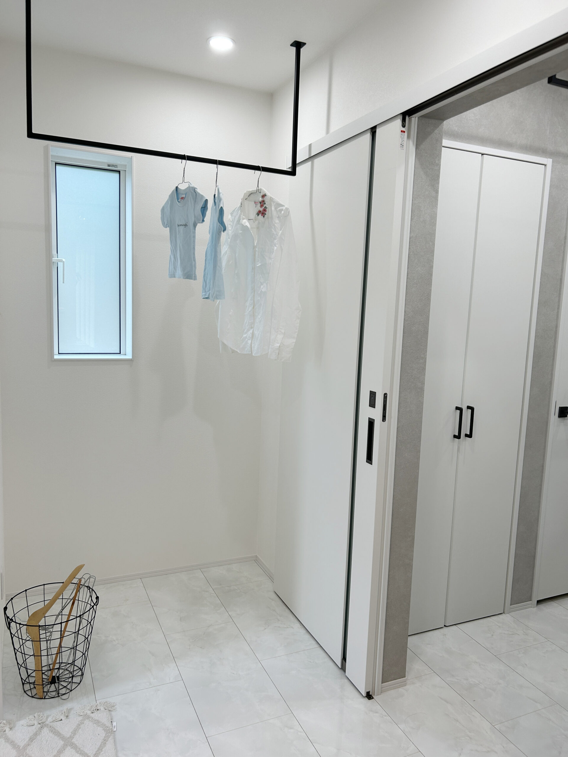 収納たっぷり!室内物干しもある広々ランドリールーム